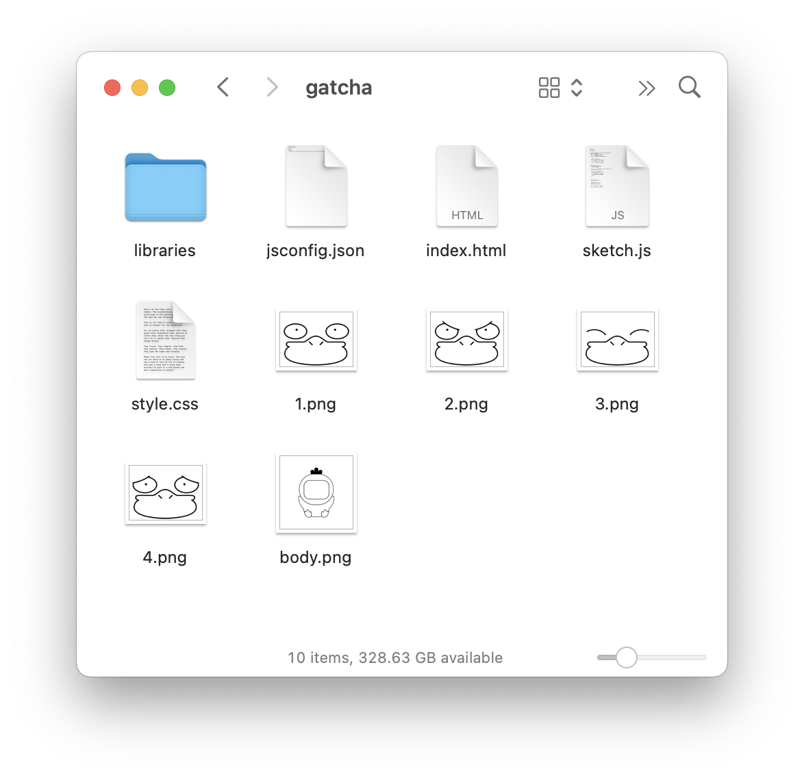 Create a new p5.js project in a new folder named "gatcha" within you local Github repository and copy the images into the root folder of that sketch – let's leave the canvas as-is when working with a new project: