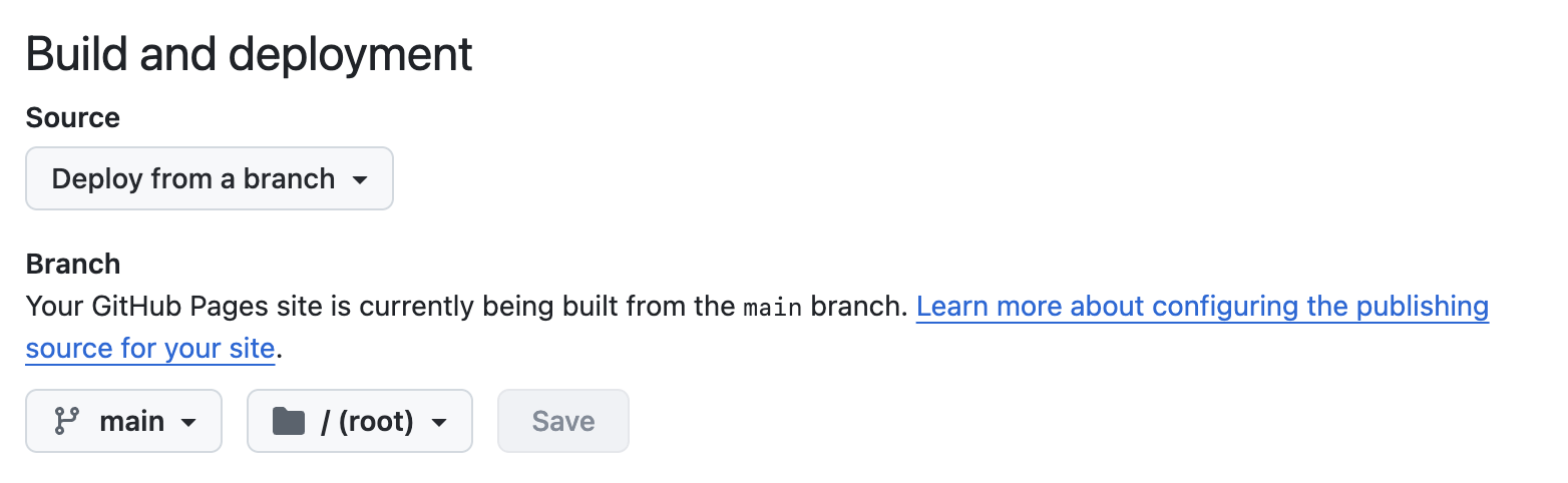 - Under "Build and Deployment" select the "Source" to "Deploy from a branch".