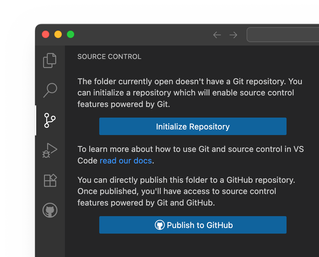 vd-computation), and navigating to the tab for "Source Control" in left-hand tab sidebar. Follow the prompts to create a "Public" repository. - Now, if we look on Github you can now see your files are stored there in a new "Repository" with the same name. When we "push" code from our VS Code editor now, we can see the files updated in our Github Repo.